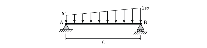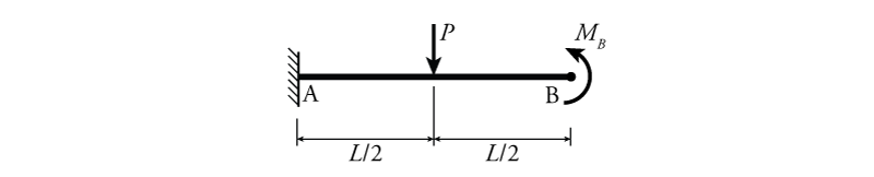 - For the beam shown below, use virtual work to determine the minimum moment of inertia ($I$) such that its deflection does not exceed $\frac{L}{360}$.