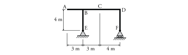 - For the frame shown below draw the influence lines for $E_y$, $F_y$, $V_C$ and $M_C$ using the equilibrium method.